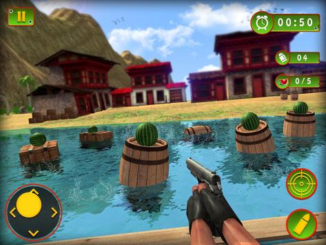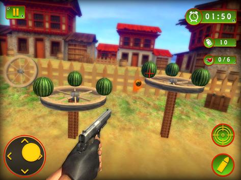 世界に本当の銃射撃者のエキスパートを見せてください。あなたはスイカのターゲットを撮影する必要があります。スイカの代わりに他のオブジェクトに当たった場合、この無料のハンティングゲームは終了します。正確な目標を持って、拳銃とピストルを使って、動く、ぶら下がって飛ぶすべてのターゲットを壊します。この3Dシューターシミュレーターゲームでは、スイカシューティングゲーム全体に飛んでくる弾丸で果物を粉砕します。このFPSフルーツシューティングゲームであなたの専門的なスキルを示してください。古代の熟練者の射手のようなすべてのハードルと障害を引き継ぐ。