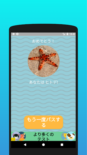 あなたの友達を確認し、結果を比較してください。 このテストをあなたの友人に送信するか、あなたとあなたの友人の海の生き物の種類を調べるためにスマートフォンでテストに合格させてください!