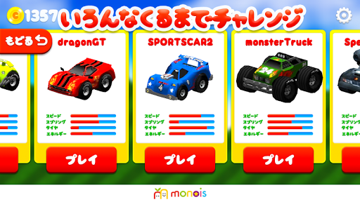 たくさん遊べるように車は13種、ステージは5種用意しました。