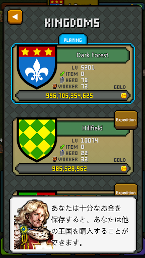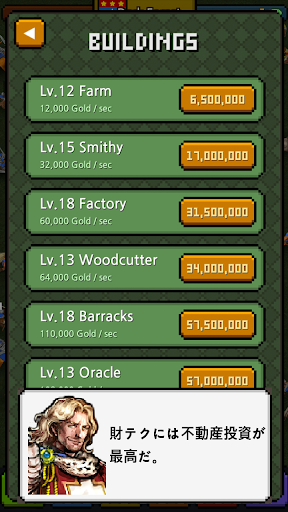 2.様々な機能をアップグレードすると、勇者が金をよりよく稼い来ることができます。