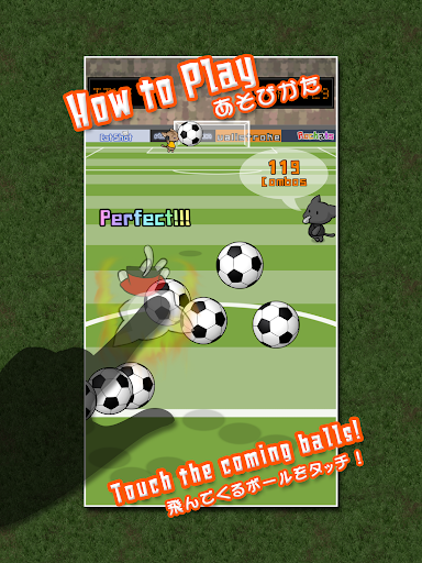 ネコたちによるワールドカップが開催されます。サッカーのシュートをどれだけ決められるかを競うスポーツアクションゲームです。 次々と飛んでくるサッカーボールをすばやくタッチし、制限時間以内により多くのゴールを決めよう。うまくボールの真ん中をタッチしないと、ゴールに入らないので、正確なタッチでボールを狙おう。