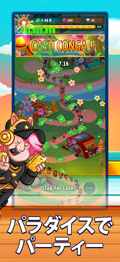 レッツコンガ!お客さんと一緒に楽しみながらコンガラインを始めましょう!リズムに合わせてタップしてお金をゲット!