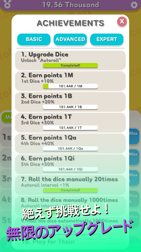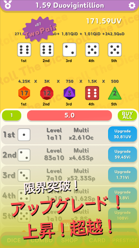 ・それぞれポイントを獲得できるダイスとマルチプライヤーダイスを成長させます。