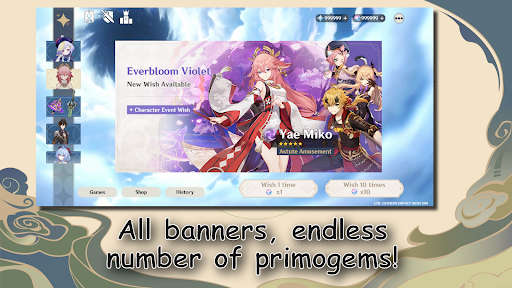 このGenshin Impact Wish SIMは、Genshinの影響からすべての切断されたキャラクターを手に入れることができます。ゲームがキャラクターギャラリーと武器ギャラリーを持っているので、あなたはキャラクターのコレクションを閲覧して構築し、あなたのコレクションを楽しむことができます!このgenshin wishを試してみてください!