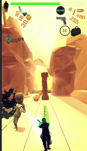 Alien Pursuit is an amazing running game for Android.Run through the desert & forest shooting aliens & virus.Collect antidotes,gold & gems. Clear levels by collecting Portal elements to open the portal to the next level.