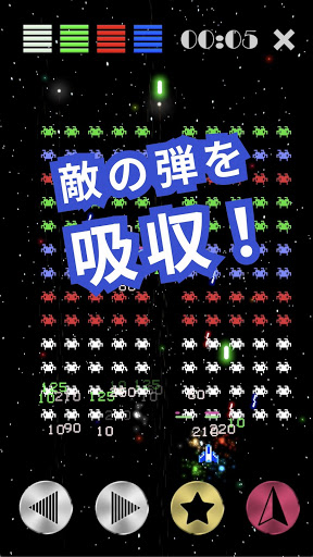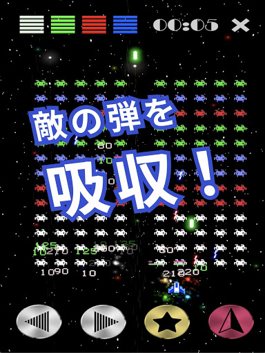 最短クリアへは脳トレの要素もありますので、戦略を練ってインベーダーを倒しましょう。ステージをクリアすると入手できるバレットブースターという強化石を使って、最初から戦闘力を上げた状態でステージを開始することも可能です。パワーアップすることで破壊スピードは格段に上がり敵を素早く倒すことができます。そしてスーパービームを撃てるようになりますので一度に敵を一掃して破壊することが可能です。ストレス発散にもお使いいただけます。