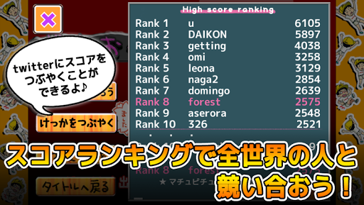 プレー後に、自分の記録をツイートすることができます。