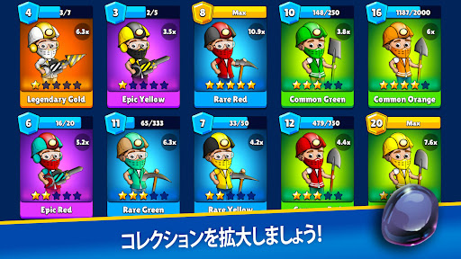 このアイドルマイニングゲームでオフラインになっている場合でも、鉱夫は掘り続け、現金と金を獲得し続けます!