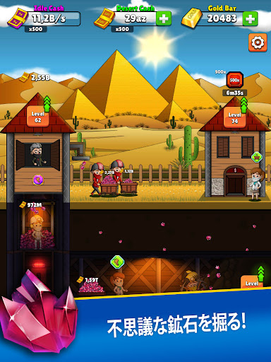 鉱山に経験豊富なマネージャーを雇い、ワークフローを自動化しましょう!あなたの現金とアイドル状態のキャッシュフローが止まらないように!あなたがオフラインのときでさえ、あなたの鉱夫に金や他の鉱石を掘り続けさせてください!