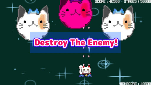●エネミー機(敵のねこ)を避けたり、弾を避けたりしながら、敵を撃破してください。