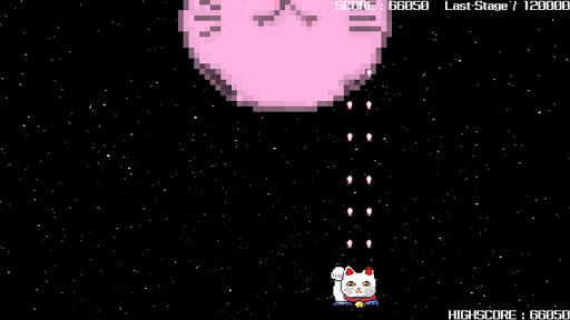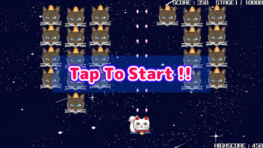 ●画面タップでゲームスタート! プレーヤー機(まねき猫)が自動連射を始めます。