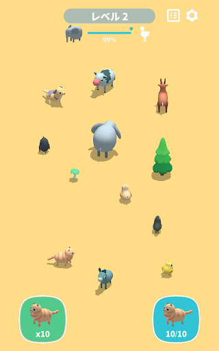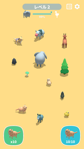 かわいい動物たちを1vs1で組み合わせて、ネコ、イヌ、ゾウ、フラミンゴなどなど、いろんな新しい動物を作っちゃおう!