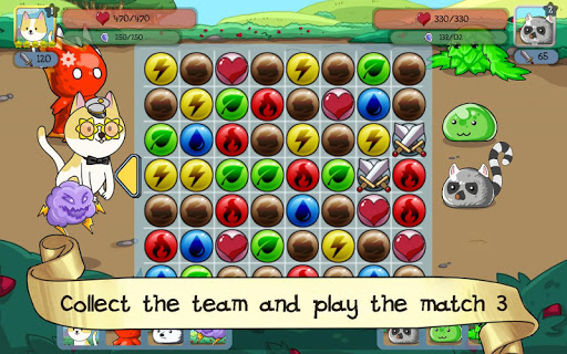 A unique fusion of genres virtual pet and match3. Your pet acts as the commander of a detachment of beasts who are going through adventures. You collect a unique team, and go through different levels in the match3 game.