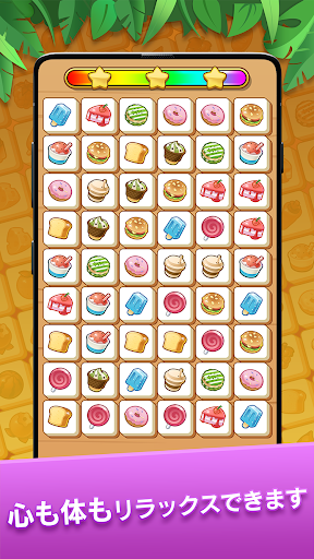 フルーツ、お菓子、野菜などのペアを繋いて消していきます。
