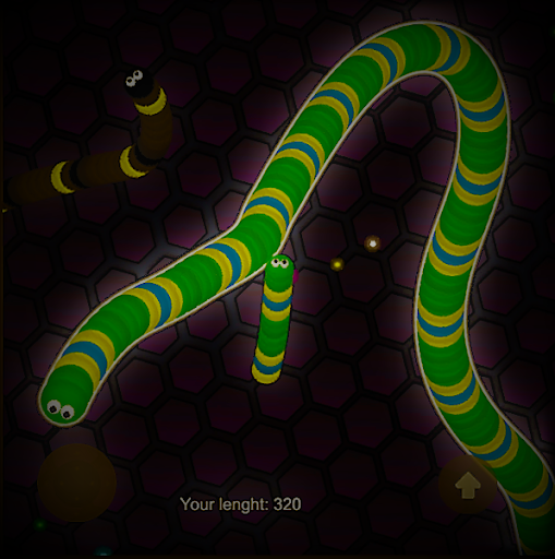 Using a boost button can make snake to run faster but running fast will reduce the length of snake. Focus on the snake meat along the way, and eat as many as possible to become bigger snake.