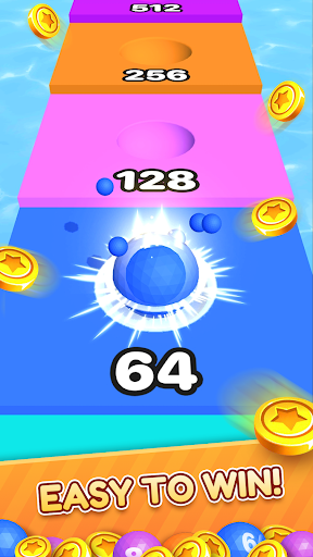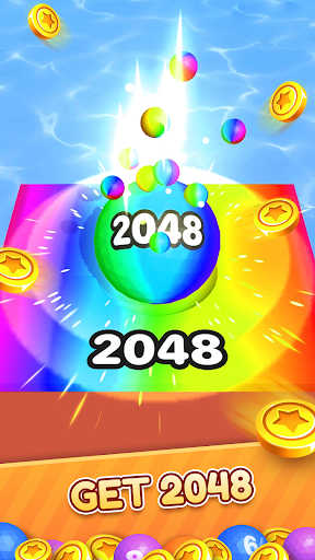 2.Merge the running ball with same number and color to upgrade your ball and finally reach number 2048.