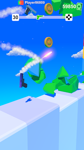 ガンレースは、対戦相手を通過するために直角に撮影するゲームです。したがって、対戦相手の前にレベルを通過して彼を倒します。収集したボーナスは、ゲームの終わりに獲得した報酬に追加されます。ただし、レベルを渡すことができない場合、または対戦相手に負けない場合、収集したボーナスはすべて削除され、レベルが再び開始されます。ゲームの終わりにボーナスタワーで撮影することで収集されます。急いではいけないというあなたの利益のために:)