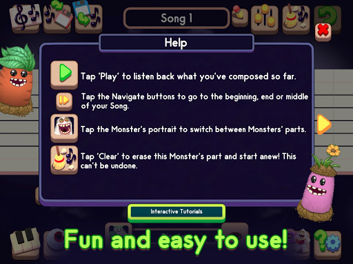 私の歌のモンスターのヒットゲームからかわいい音楽モンスターのオーケストラを行う!各モンスターは、個性と独自の独特のボーカル、パーカッシブ、そして楽器の音で詰められています。強力で使いやすい音楽エディタを使って、あなた自身のオリジナルソングを作成するか、あなたのお気に入りを再現しましょう!