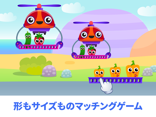 ヘリコプターがあるよ!大きなヘリコプター、中くらいのヘリコプター、小さなヘリコプターの3つのヘリコプターが準備をして、荷物を運んでもらうのを待っています。このゲームでは、子どもたちは3つのサイズを区別することを学びます。食材をヘリコプターのサイズに合わせましょう!