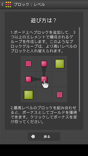 このゲームに、明確なインストラクションは用意されていません。しかし、一度ハマったらやめられない、そんなゲームとなっております。ブロック:レベル はじめたらやめられない、シンプルで癖のあるゲーム。そのようなゲームをお探しの方は、是非このゲームをお試しください。ゲームは無料でダウンロードして遊んでいただけます。この脳ゲームの基本原理はシンプルです:ボードから同じ色、同じ形、同じサイズのブロックを選んで消去していきます。 少なくとも3つ、ブロックを繋げていく必要があります。その他、ゲームの特徴については是非、ご自分で発見していってください。