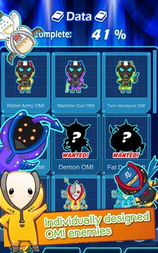 《OMI SHOOTING》は、反応能力を測るシューティングゲームです。簡単操作で楽しめる、 初心者にもおススメのゲームです。OMIを操作して、弾丸の雨の中の敵弾をかわしながら、敵を破壊して高得点を獲得します。