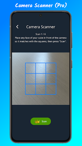 Proは、高度な機能へのアクセスを提供します。広告の削除、より多くのキューブサイズとスタイル、より長いゲーム、スコアボーナス、サイズ4のキューブのチュートリアル、およびアクセス色のキューブを1つずつ入力するのではなく、実際のキューブの顔を直接スキャンできるソルバーのカメラスキャナー。