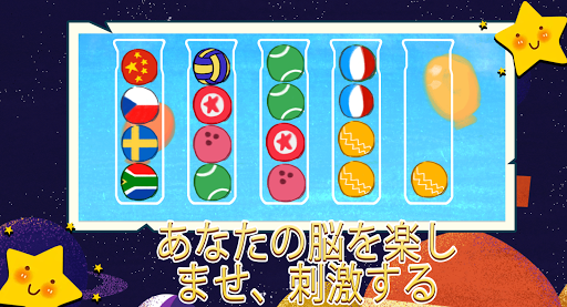💡 チューブの中の色のついたボールを、同じ色のものが全部一緒になるまで素早く並べ替えます。💡