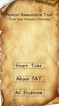 The Remote Associates Test (RAT) is a test of creative potential. In each task you will be given three cue words that are linked by a forth,which is the correct answer. For example :
