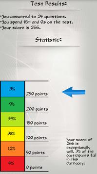 need to press anything else.The test consists of 27 problems with different difficulty. The harder problems award more points of course. The time you spend before answering a task