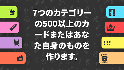 男性であろうと女性であろうと、楽しめるようにこのゲームは作られています。友達と一緒にわいわいして、酒を飲んで酔っ払いたい場合にも最適です。テキーラ、ハイボール、ウォッカ、ビール、日本酒、焼酎、カクテル、ワイン、ドリンクは何を飲むかはあなた次第です。