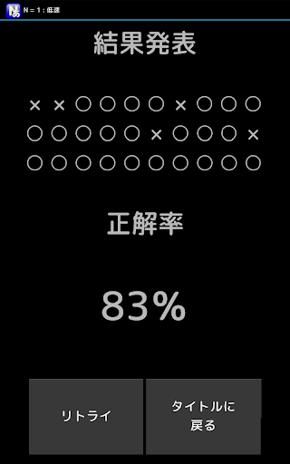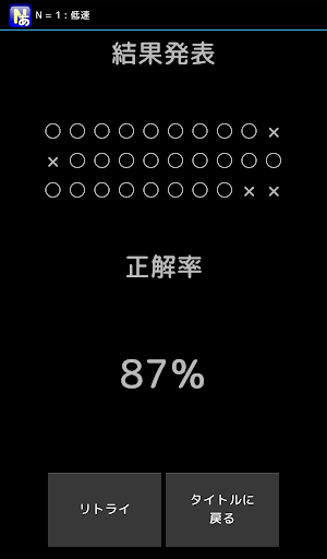 Nとスピードと問題数はステージ毎に決まっており、全問正解すると次のステージが選択できるようになっています。