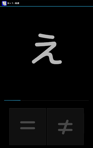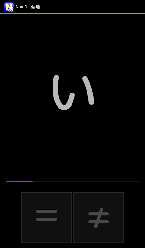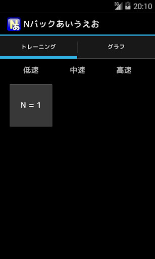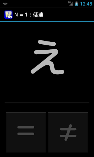 このアプリはランダムに表示される「あいうえお」を順番に覚えながらN個前と同じかどうかを答えていく記憶ゲームです。
