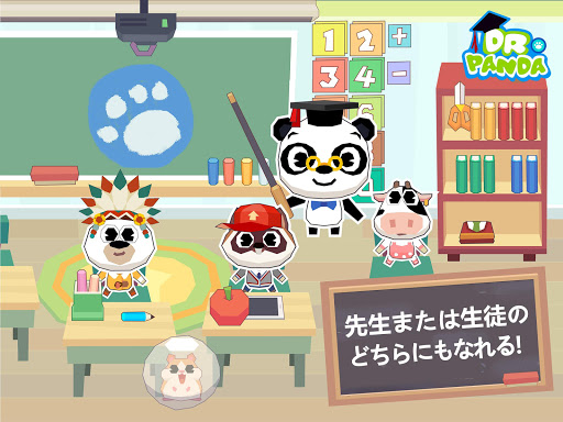 Dr. Panda 学校のすべての教室を探索しよう!美術のクラスで粘土の彫刻を作ったり、遊び場で自分の作物を育てたり、ハムスターのHamboを世話したり、教室で算数を教えたり - 遊び方はたくさんあります!