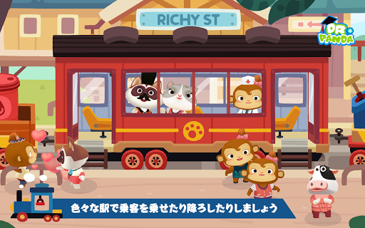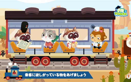 Dr. Panda列車が間もなく発車します!乗客を席まで案内して、貨物を積んで、旅を始めましょう。駅から出発したら、Dr. Pandaが列車を運転するのを助けたり、乗客の中にいる友達に挨拶したり、乗車券にスタンプを押したり、お菓子を配ったりしましょう!