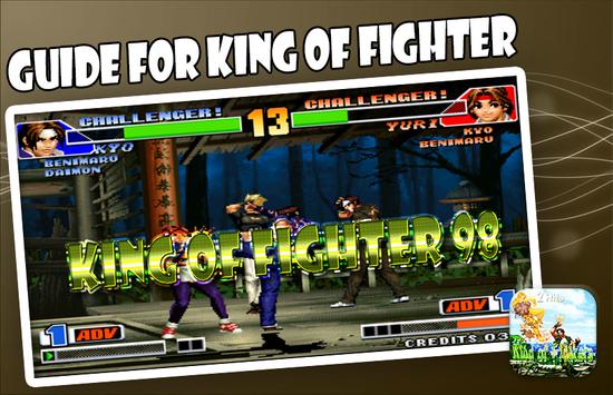 to learn how to play and to getting trophies and more movements, Guide and tips and chetas for King Of Fighter to facilitate how to play and to get prizes and more movements, we've collected the best tips and tricks do not cheat, learn how to play and to getting trophies and more movements, We will gives you the best tips and tricks not cheats for King of Fighters 98.