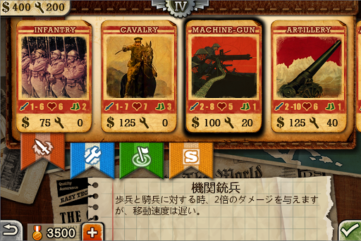 - 陸軍、海軍、空軍などの11つの兵種にはそれぞれの特性がある。
