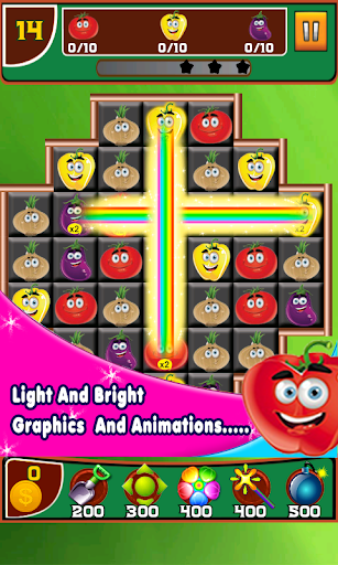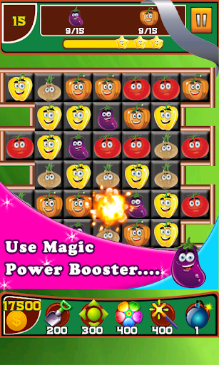 Meet Legend Of Farm Garden , a casual match-3 game where you must switch and match 3 or more identical crops to destroy those and increase your score. It’s not as easy as it sounds, since each level gets more challenging as you advance in this gardening puzzle. The graphics stand out through attractive animation effects and garden-themed items. The main goal is to match as many crops as possible to unlock powerful boosters (Hammer Magic, Bomb, …) that help you destroy the crops faster.