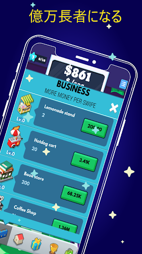 ✔仮想世界の億万長者のためにお金をスワイプして金持ちになる楽しいクリッカーゲーム お金稼ぎゲーム無料。