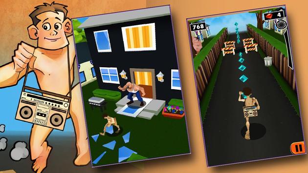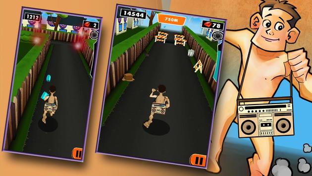 ヘルプおしっこケイ(PK)は、彼がこの無限のランナーのゲームで彼を脱出しようとする路地を通して彼を追いかけている怒っている男の怒りを生き残る。