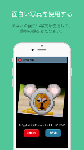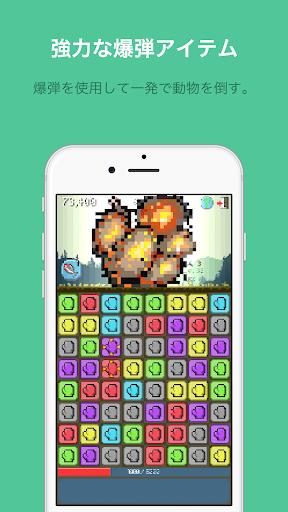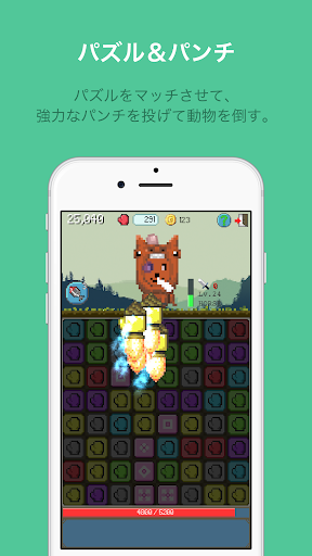 3-マッチングパズルをプレイします。続いてあなたを攻撃するマウス、鶏、馬にパンチを飛ばし倒すことができます。あなたの写真アルバムの写真を選択して攻めてくる動物たちの顔を変えることができます。高いレベルを達成すると、より強いパンチを飛ばすことができます!