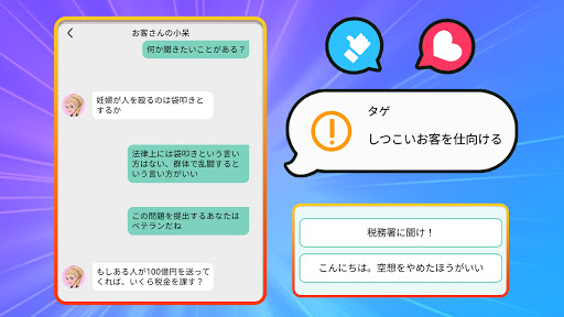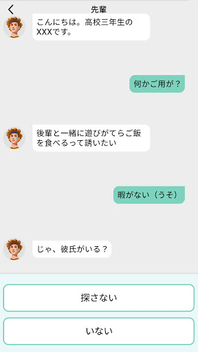チャットマスターになりたいか?今直ぐチャットマスターをダウンロードしよう!様々なシーンで、異なった人とチャットするスキルを勉強しよう!異性とのチャットで、亭主関白っぽい男の感じから脱して、異性を好きになる。上司とのチャットで、上司とうまく付き合って、給料の上げを目指す!もっと多くのテーマを解放しよう!