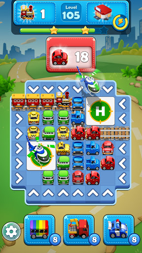 _ユニークなゲームプレイ:警察、車、電車、ヘリコプター、消防車、救急車がクレイジートラフィックパズルカーゲームで目的地に到着するのをサポート