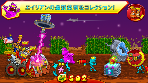 UFOがPopのとうもろこし農場で目撃された!彼の農場に膨大に備蓄されている武器を使って、とうもろこしをエイリアンから守ろう。コーンチョッパーに飛び乗って、その小さくて青白い侵略者たちを一人残らず打ち負かそう!襲ってくるUFOであろうと、危険な障害物があろうとも、世界で一番のエイリアンハンターである君の手に掛かれば問題ではない!UFOからのトラクタービームをかわし、Popの農場を守り続けながら、恐ろしく凶暴な火星のトロール達に立ち向かおう!