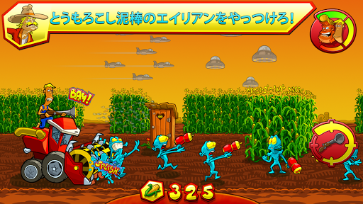 Pop、Joe そしてOtis を助けて、宇宙からやってくる、とうもろこしを根こそぎ奪うモンスターたちをやっつけよう!