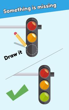 各クイズは不完全な図面です。欠けている部分を見つける必要があります、欠けている部分がどのように見え、それを描くために鉛筆としてあなたの指を使って写真を完成させるかを想像してください。