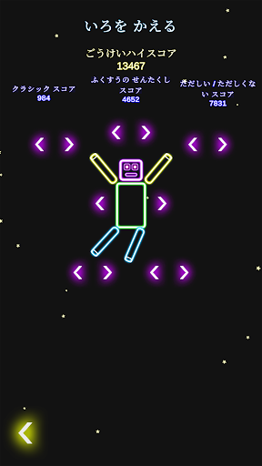 ネオンマンをレーザーから遠ざける必要があります。 レーザーがネオンマンを溶かすからです。 しかし、彼は再び再生することができます。 質問に正しく答えると、コンボができてポイントが増えます。 また、獲得したポイントでネオンマンを好きなように着色することができます。
