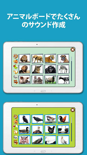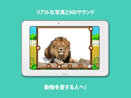子供は動物の王国の中を探検して、見た目や鳴き声、動物の名前に触れることで学習を進めることができます。