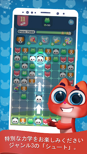 このゲームでは、ペットを順番にマッチさせて、下の列から真っ直ぐ上に詰めて並べていく。