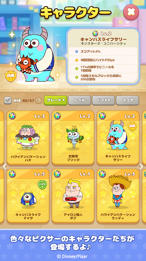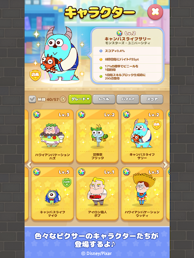 ピクサーの名作とキャラクターたちがゲーム内に登場します♪