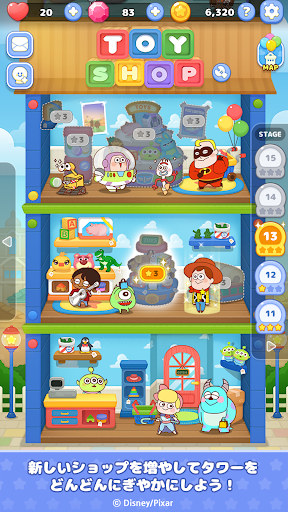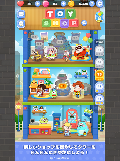 ピクサーのキャラクターたちと素敵なショッピングタワーを作ろう!
